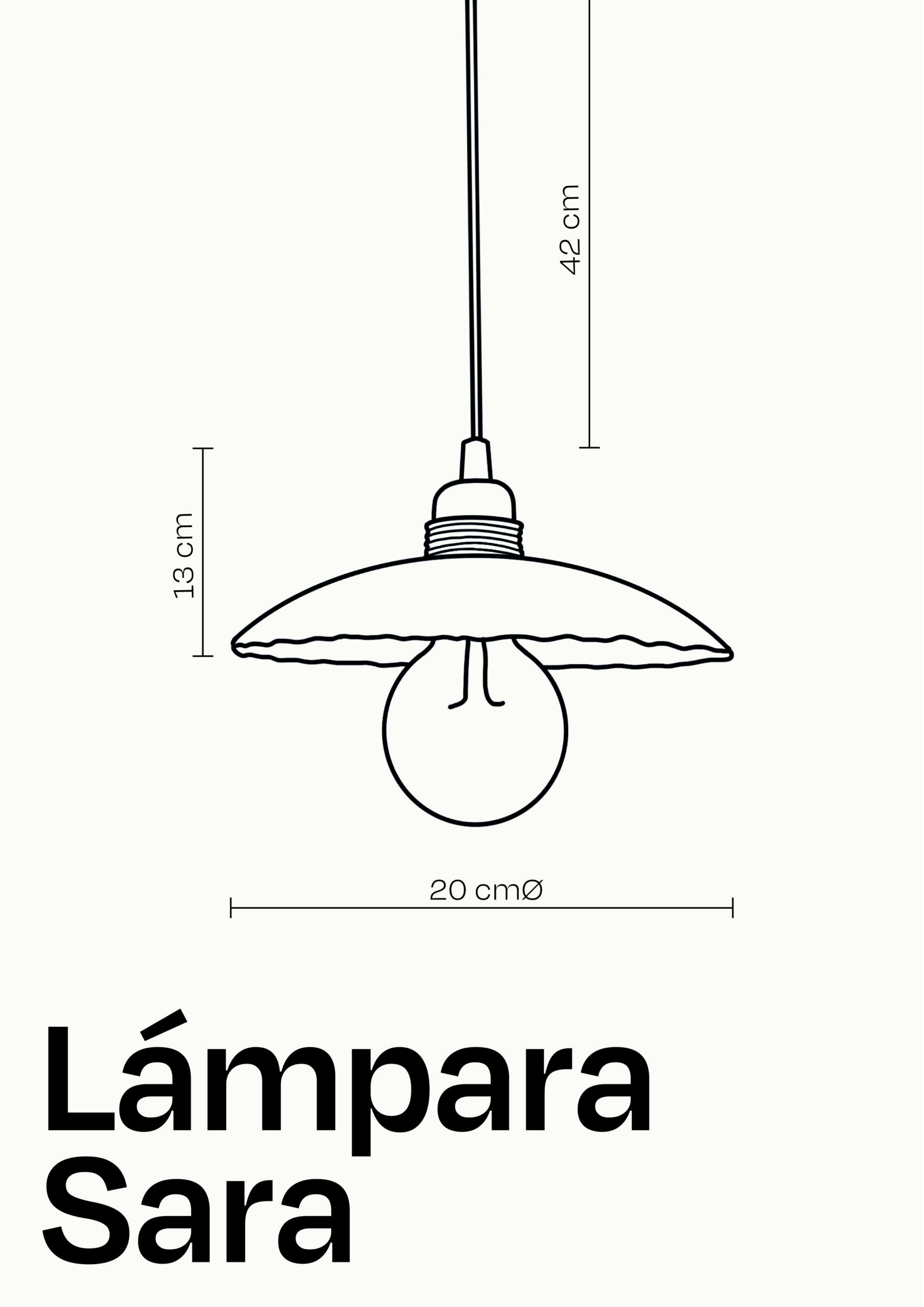 Incluye rosetón (Medida 8 cm) para colgarla al techo y cable de 120 cm. Si necesita otra longitud de cable por favor indicarlo en el pedido.