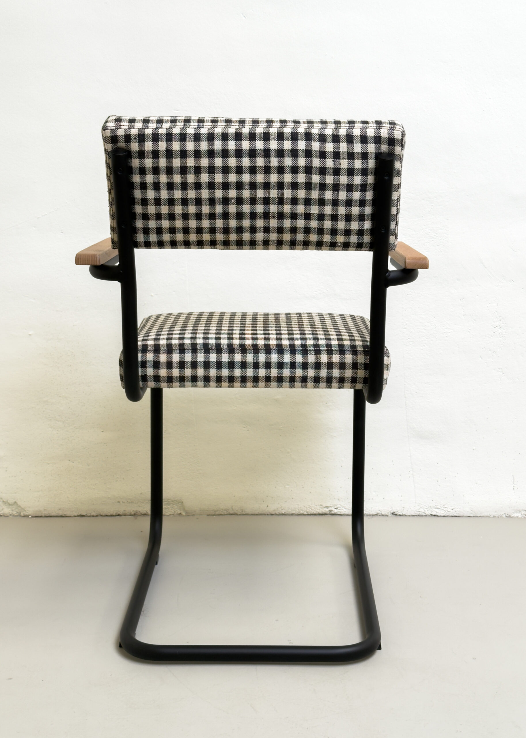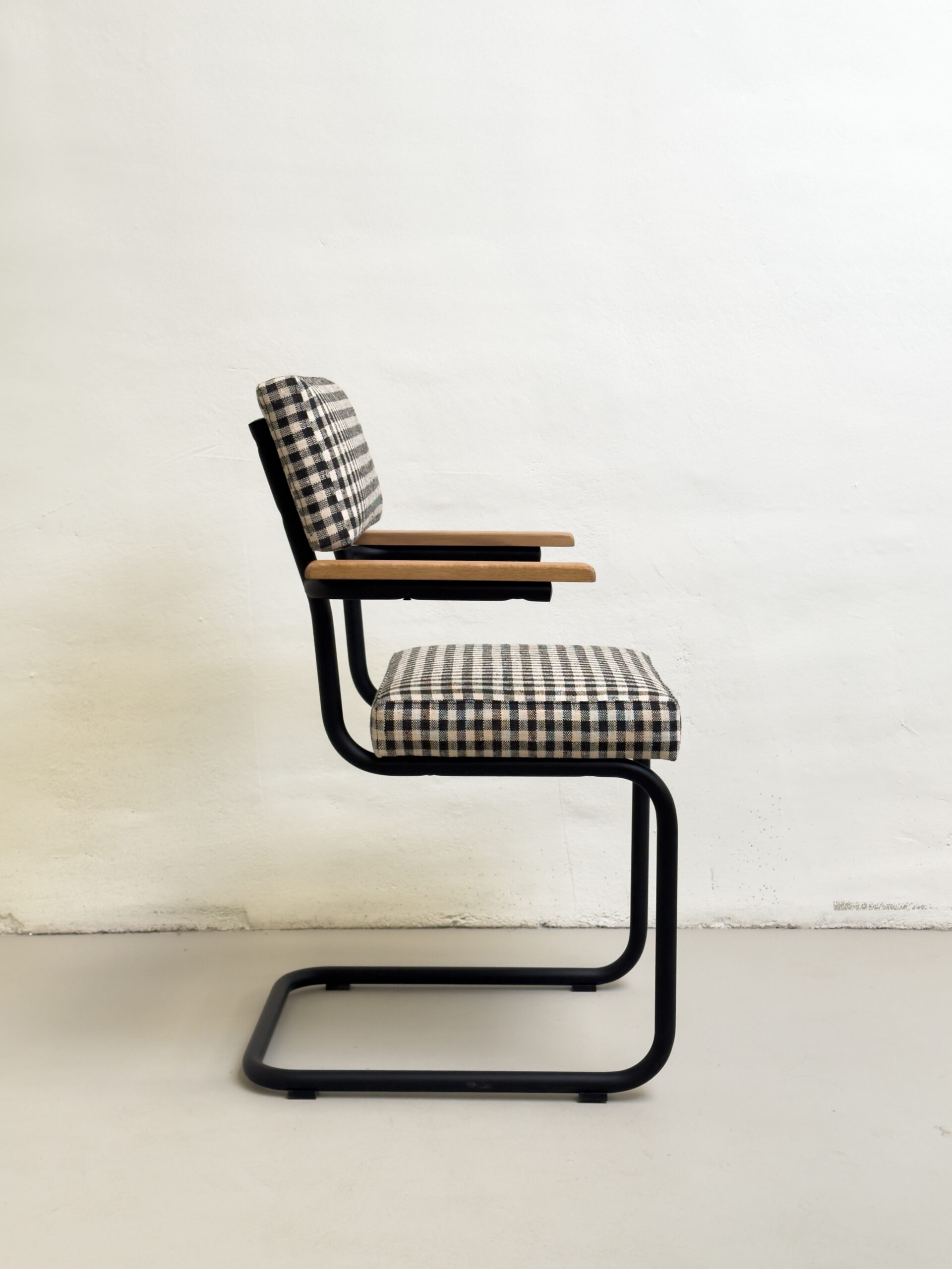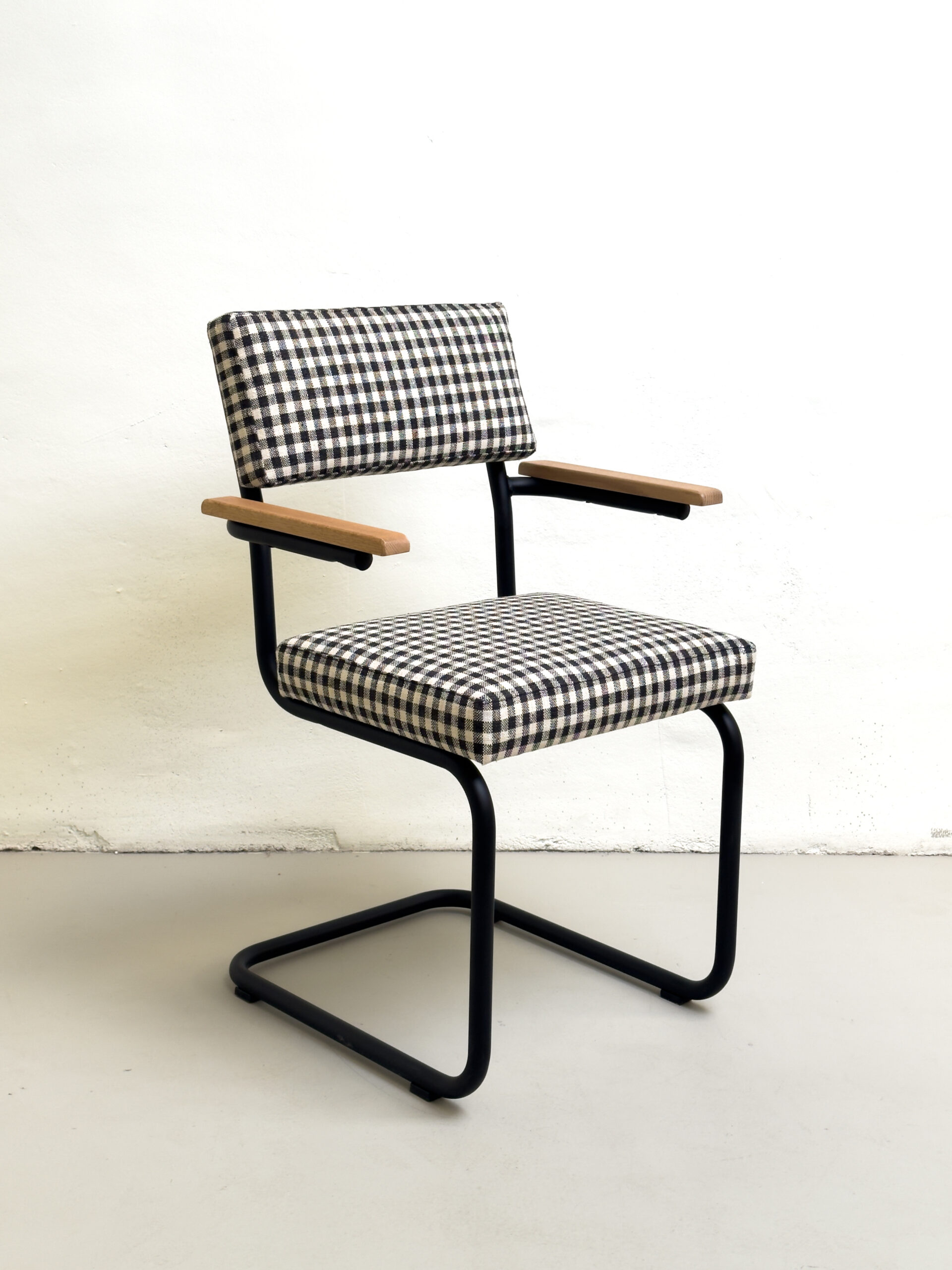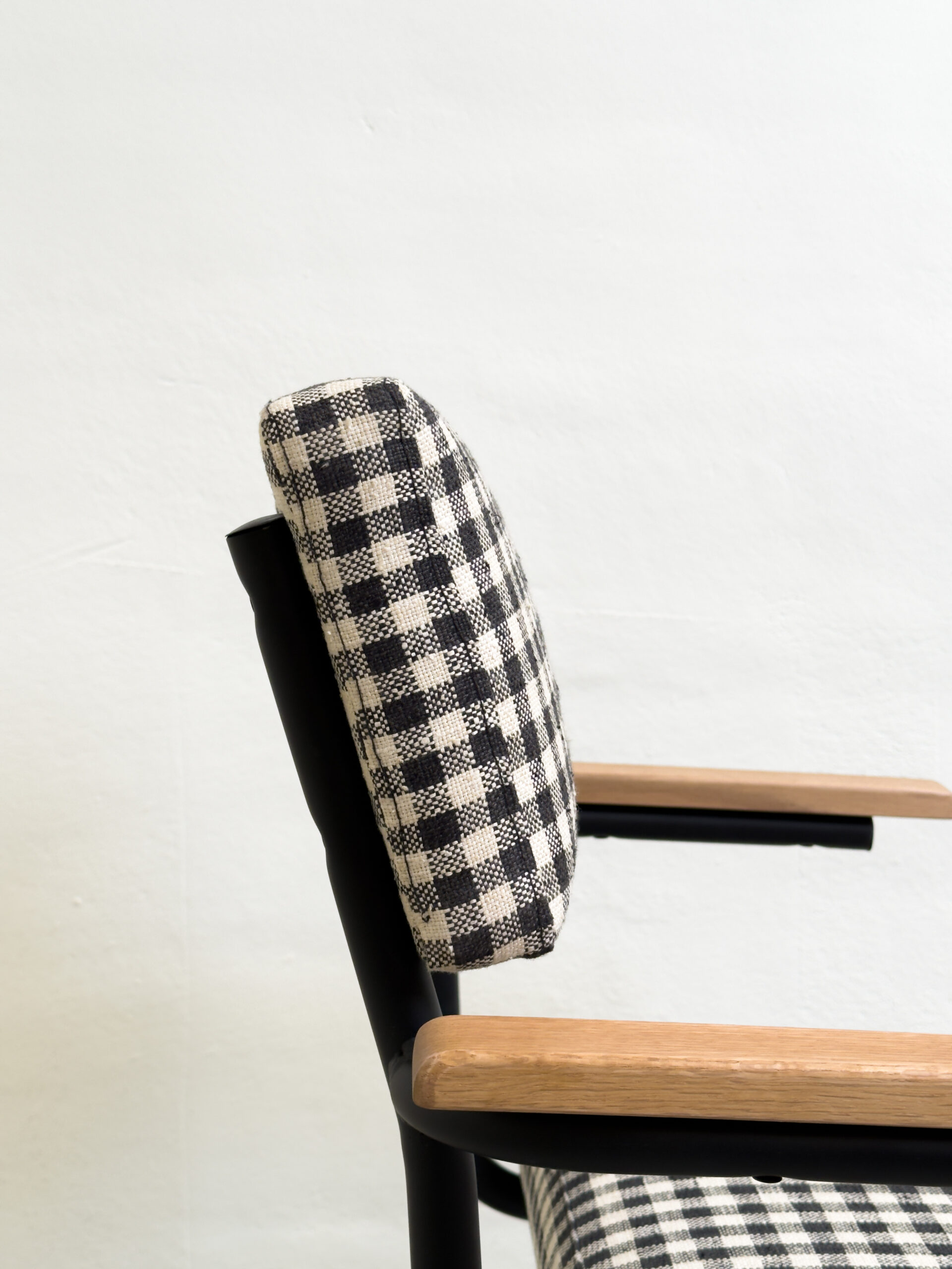 MATERIALES: estructura de hierro negro mate  y tapicería vichy blanco y negro de alta calidad.
