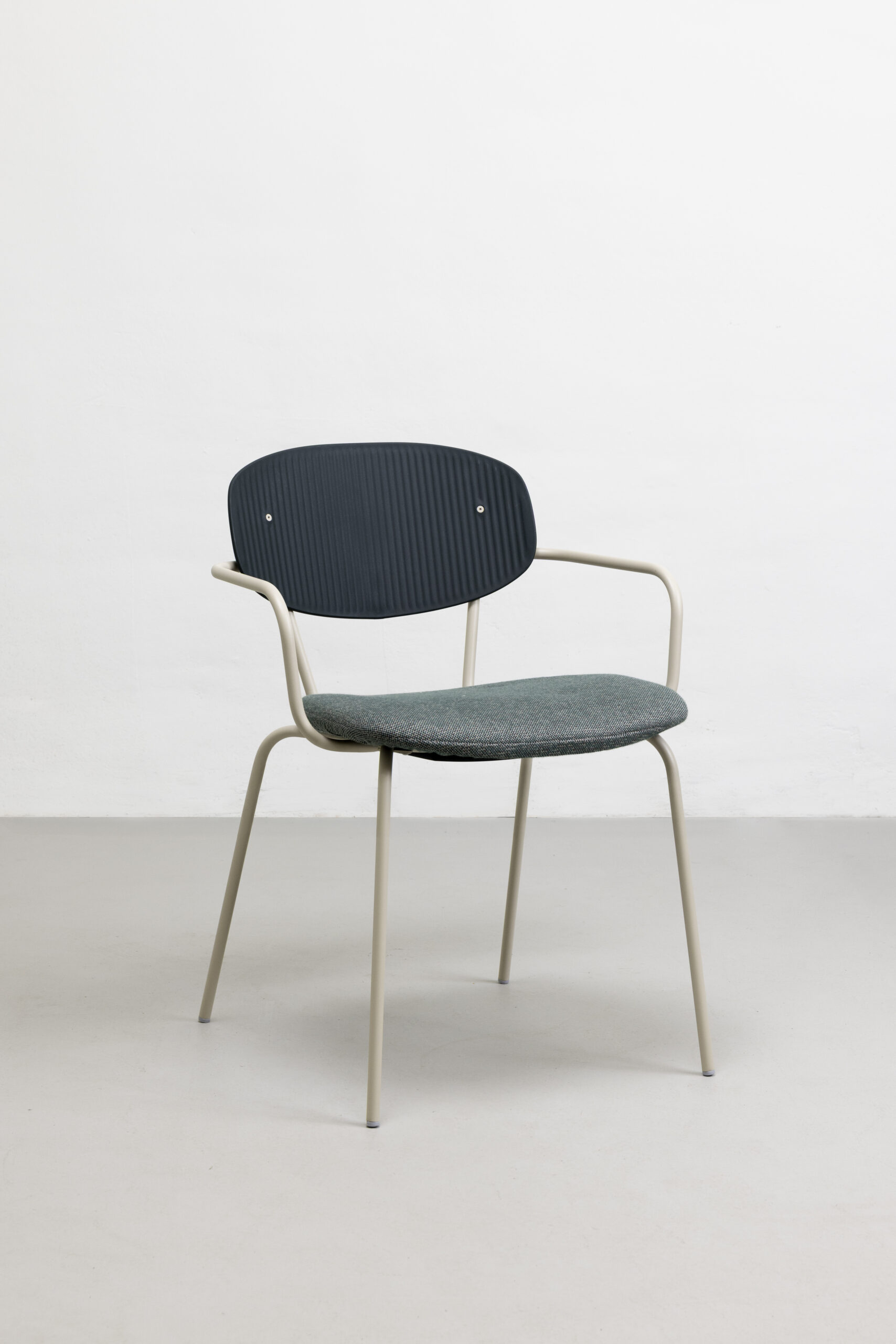 Fabricada con polipropileno 100% reciclado y reciclable y con una estructura de acero inoxidable 100% reciclable, esta pieza demuestra un firme compromiso con la economía circular.