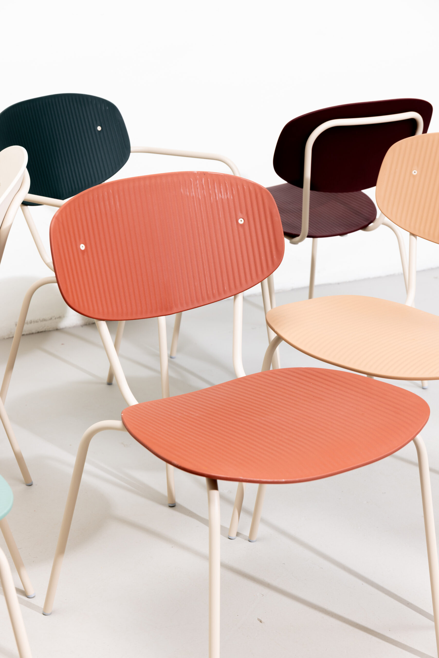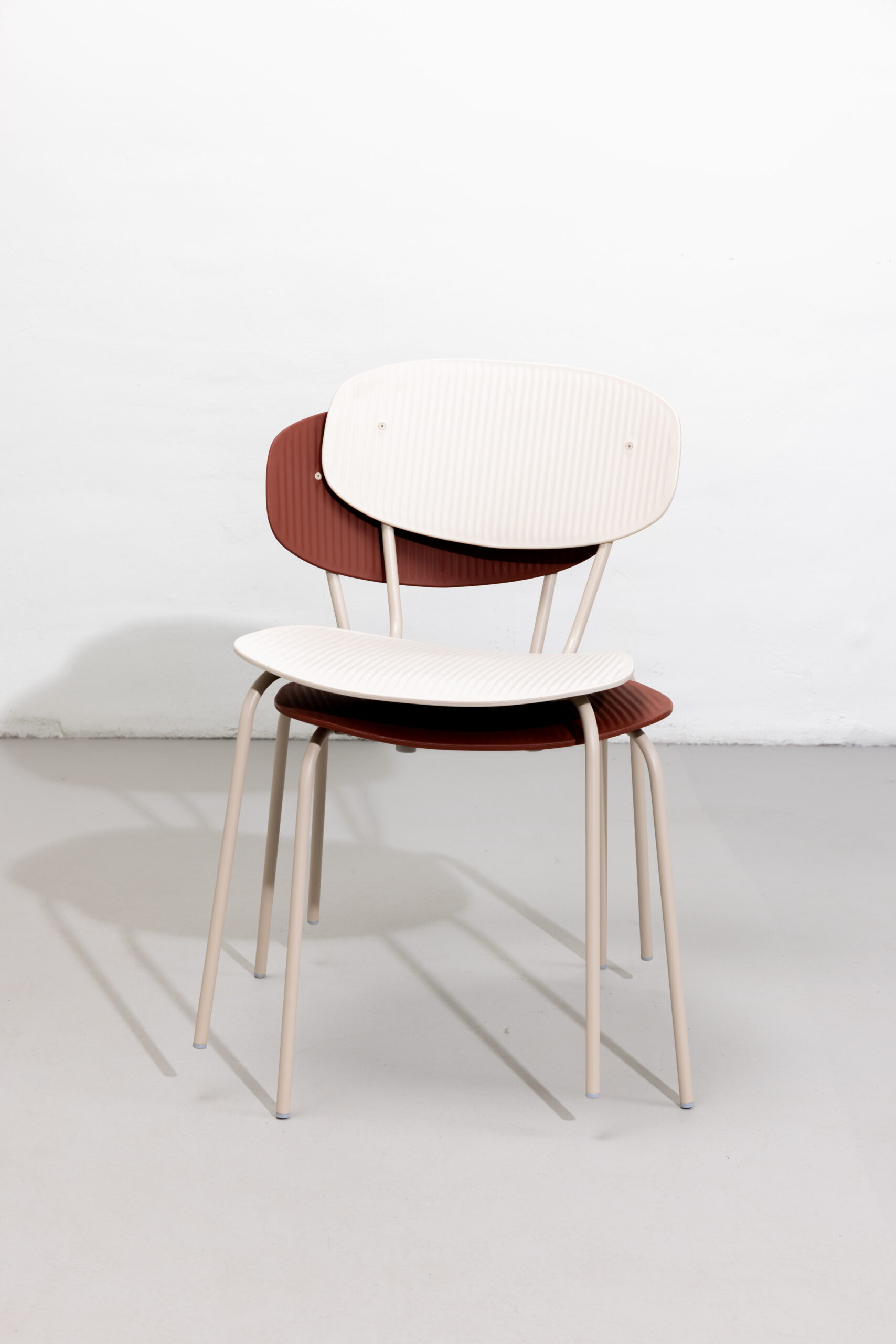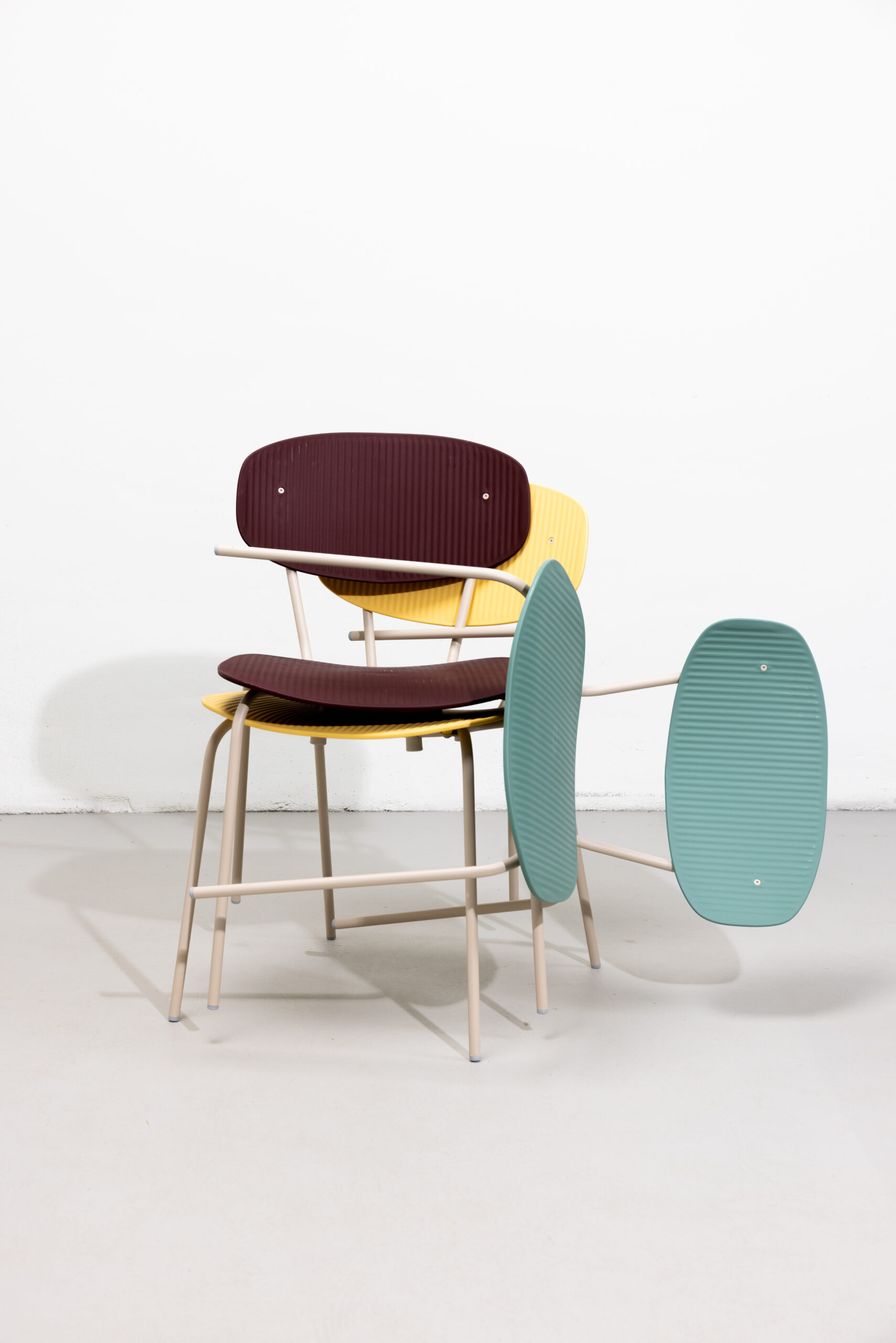 Fabricada con polipropileno 100% reciclado y reciclable y con una estructura de acero inoxidable 100% reciclable, esta pieza demuestra un firme compromiso con la economía circular.