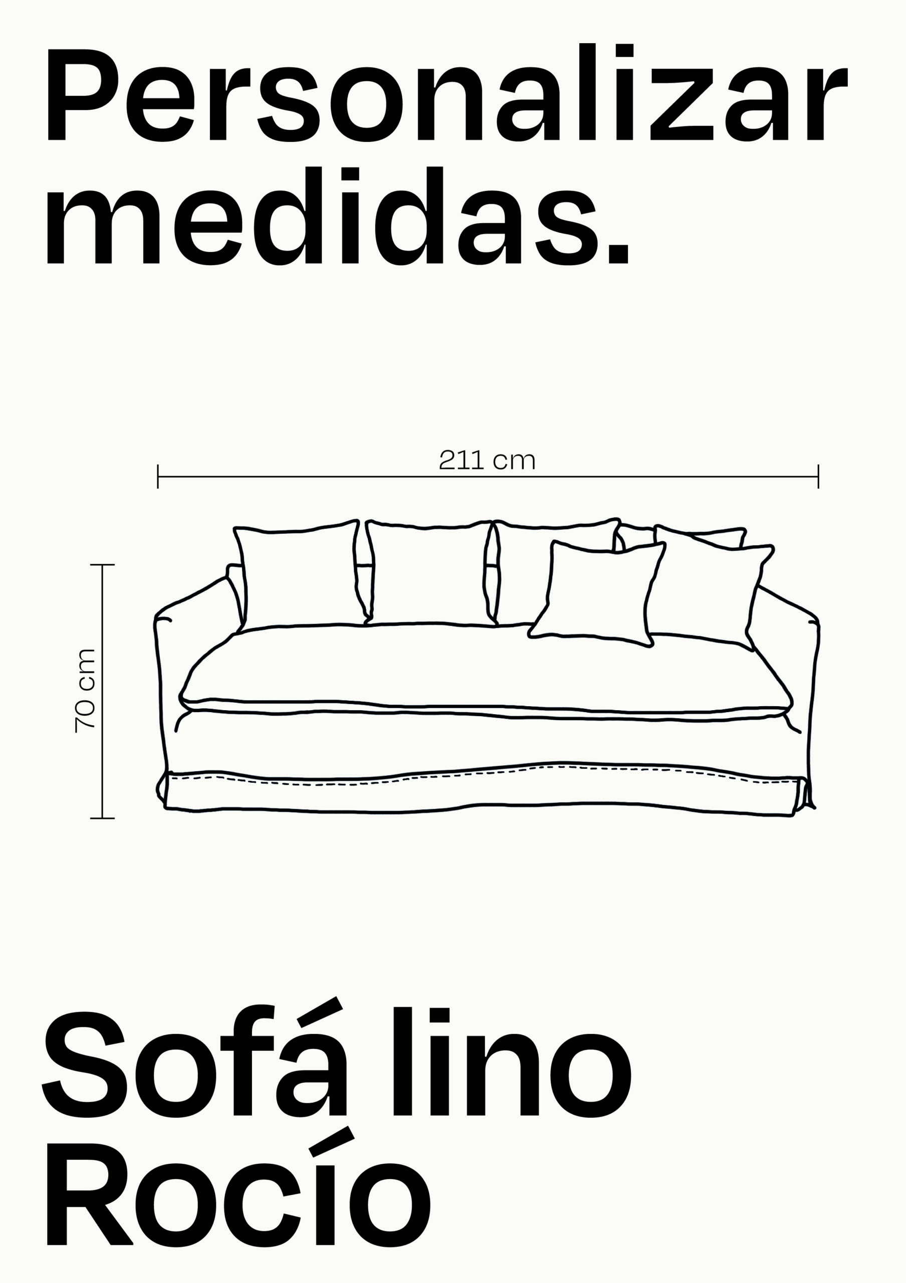 Totalmente desenfundable. Lino 100% de la firma James Malone (Funda pre lavada para que no encoja).Composición interior asiento: pluma y poliester. Composición interior almohadones: pluma y fibra hueca