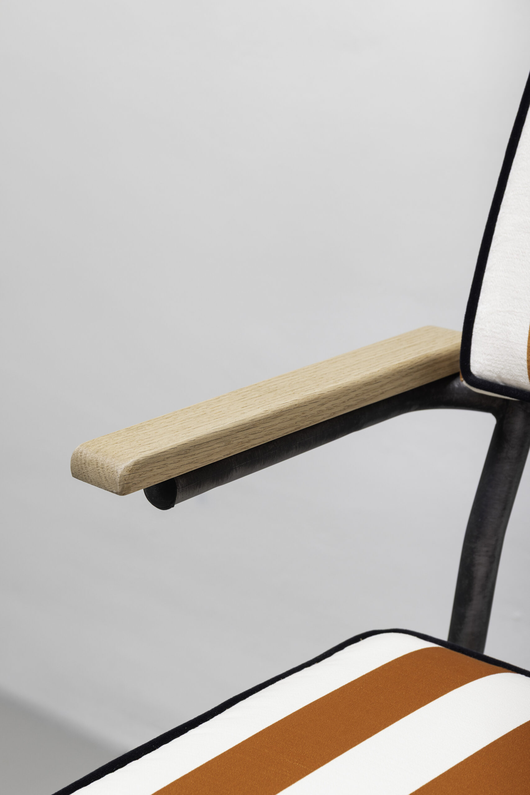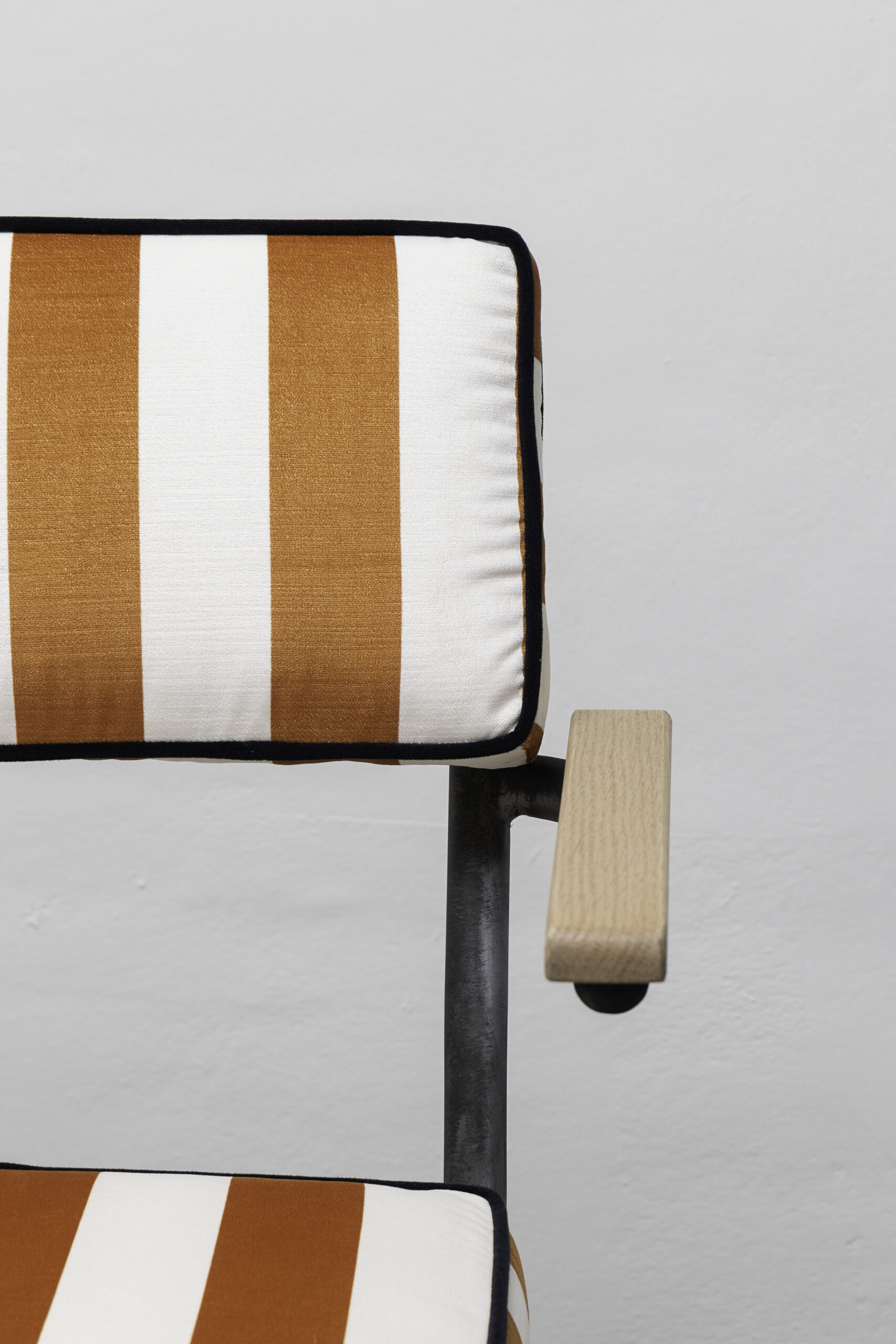 TEJIDO: Tapizado con divertidas rayas de colores sobre tejido 100% reciclado. La franja ancha bicolor, un motivo clásico en el mundo del diseño de interiores, se reinterpreta en combinaciones de colores audaces y refinadas. Una trama de lino se entreteje con una urdimbre de algodón en una tela con un tacto súper suave.