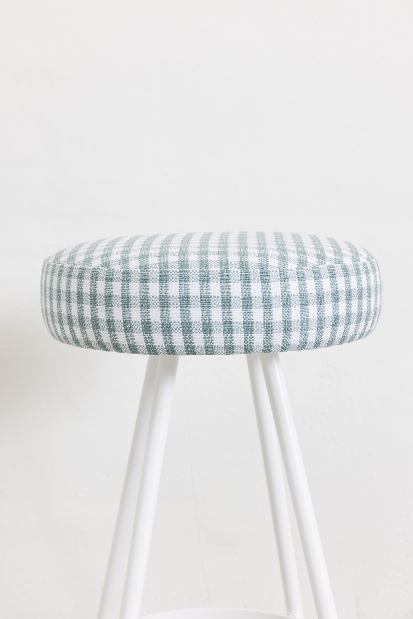 MATERIALES: Estructura de hierro lacado y tapizado con tejido de cuadros vichy outdoor-indoor.