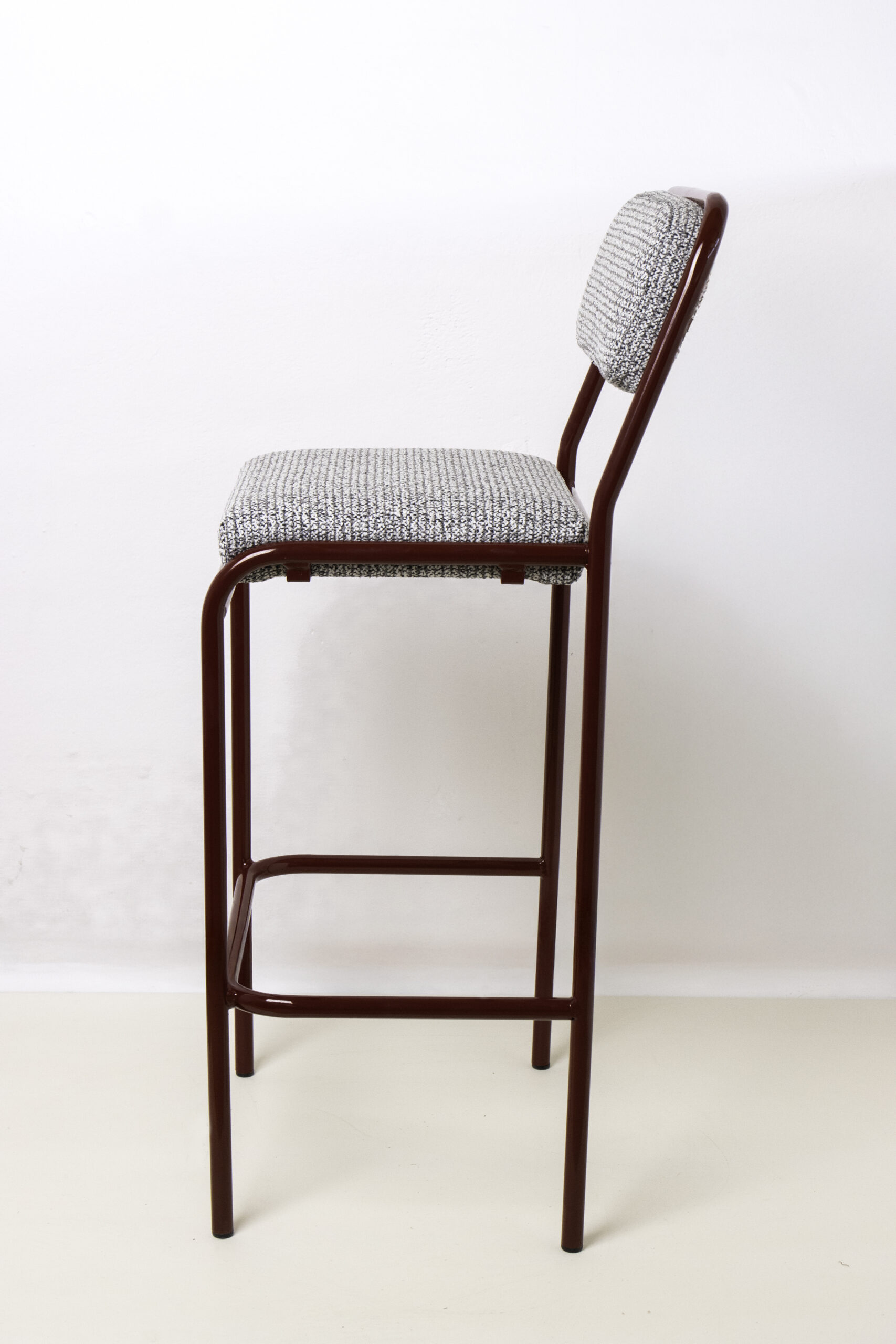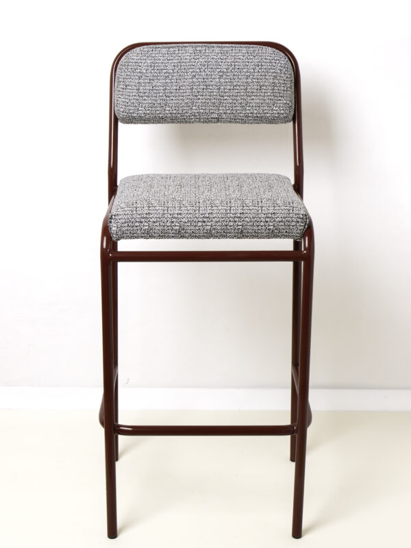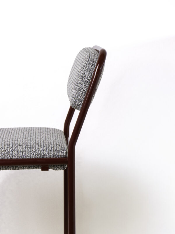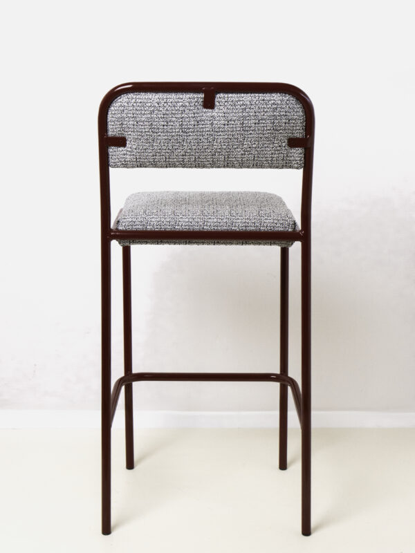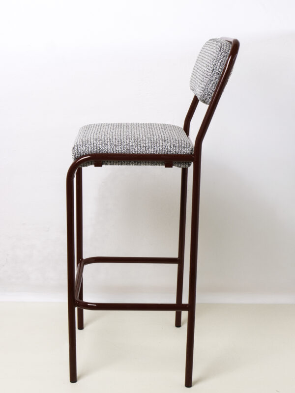 MATERIALES: Tubo de hierro de hierro pintado con sistema de pintura en polvo. Tapizado con tejido técnico antimancha. Estilo Bouclé bicolor en blanco y negro.