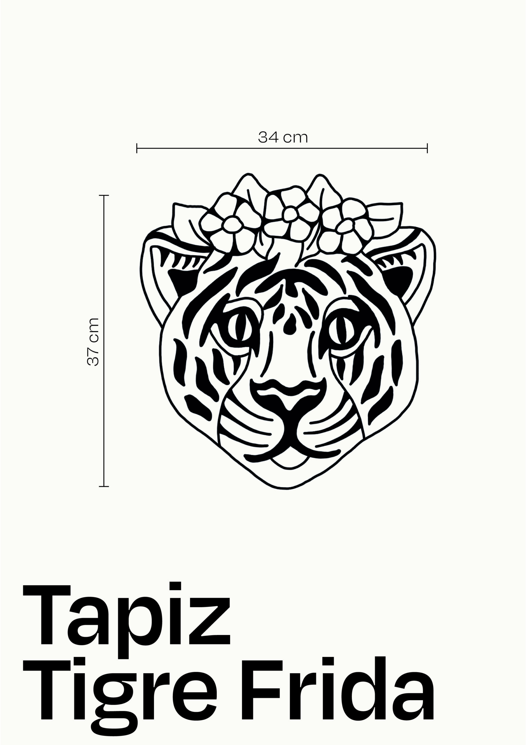 Inspirada en la musa creativa de Frida Kahlo, esta pieza presenta el majestuoso perfil de un tigre blanco coronado con un estallido de flores vibrantes. Cuidadosamente elaborada, esta alfombra única se convierte en un punto focal audaz que atrae todas las miradas y despierta admiración.